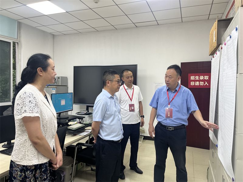 7月下旬,盛夏时节,学校2025年本科招生录取工作正处在关键阶段,学校党委书记张泽钧、校长曾芳深入本科招生录取工作现场检查指导工作,并亲切慰问招生录取工作人员。