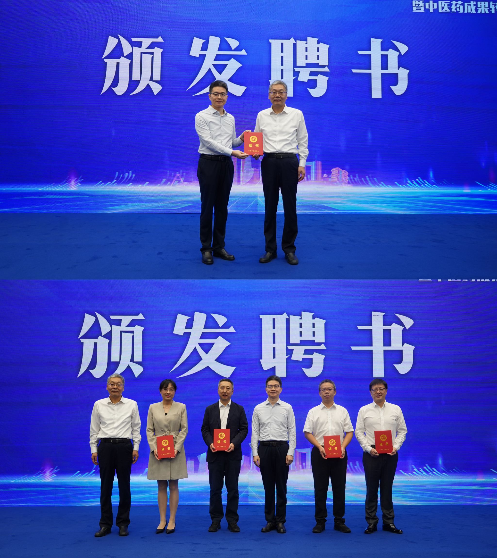 周艳杰宣布“中医药成果转移转化协作平台”成立批复,余曙光担任平台主任,陈俊峰为其颁发聘书。随后,余曙光、陈俊峰为副主任、秘书长等人选颁发聘书。