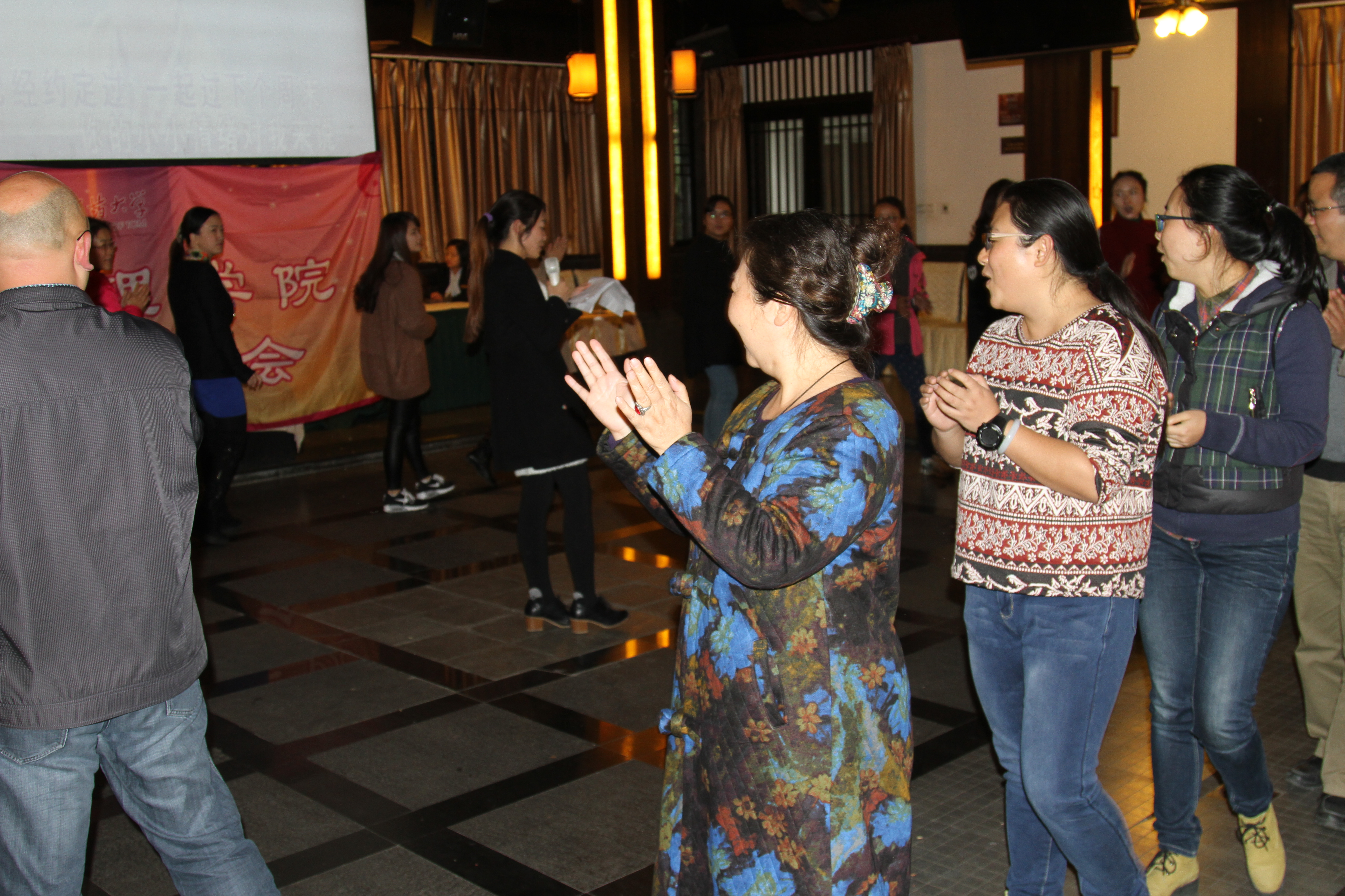 活动第二阶段为分工会活动。活动由新进教职工杨槐、徐然两位老师主持。为了快速消融活动中的陌生感,加强团队的凝聚力,学院分工会准备了团队游戏《马兰花开》和《占领阵地》。活动中老师们积极参与,既有竞争,又有合作,互助、互爱,其乐融融。游戏结束后,为了迎接学校运动会,展示学院教职工团结、上进的精神风貌,分工会还组织开展了太极拳、八段锦和广场舞《中国美》团体比赛项目的练习。