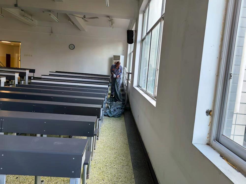 “报修即应,应急即处”是维修团队贯穿暑期的真实写照。中心城区校区后勤服务中心注重细节提升,为公共浴室更换了全新的防霉抗菌浴帘,并维修更换了淋浴喷头与吹风机,着力优化学生的生活体验。公寓服务中心则聚焦学生居住环境,不仅处理了多间寝室墙面渗水脱皮问题,全面完成新生寝室空调检修,更对公寓连廊自习室进行了环境升级,以崭新面貌静候学子归来。物业管理服务中心同样高效推进多项基础设施提升工程,包括为温江校区卫生间安装271台小厨宝、更换800余平方米卫生间隔板,及时抢修爆管、完成零星维修与电力保障,并清洗拆挂了教学楼及行政楼全部窗帘,显著提升了校园设施的完备度与美观性。