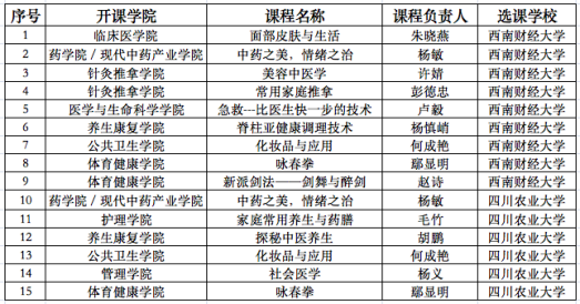 本学期,我校共向西南财经大学、四川农业大学输出课程30门,现已开班15门次;引入西南财经大学、四川农业大学特色课程11门,现已开班6门次。未来,三所高校将继续开出丰富多彩的优质校际课程,满足学生跨校学习需求。