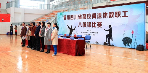 11月3日,由省教育厅主办、我校承办的首届全省高校离退休教职工八段锦比赛在温江校区体育馆举行,来自全省14所高校的离退休教职工代表队参加比赛。省委教育工委副书记刘晓晨,教育厅离退休处处长韩春蓉、副处长杨岳林,我校党委副书记、副校长、校体委主任沈涛,党委常委、副厅级调研员徐廉出席开幕式。