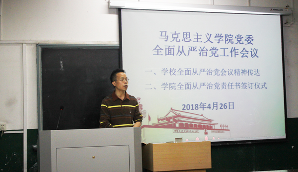 杨支才在会上传达了学校全面从严治党工作会议和学校纪委二届二次全会精神。他详细传达了学校党委书记刘毅所作的2018年全面从严治党工作报告。杨支才要求全院党员教师要增强“四个意识”,落实“四种形态”,加强风险防控“治未病”,各党支部要按照学院党委组织生活安排意见加强思想、组织、作风建设,提高基层党支部建设科学化、标准化水平。他指出,全体党员要进一步提升新认识,全面推进深化从严治党各项工作。