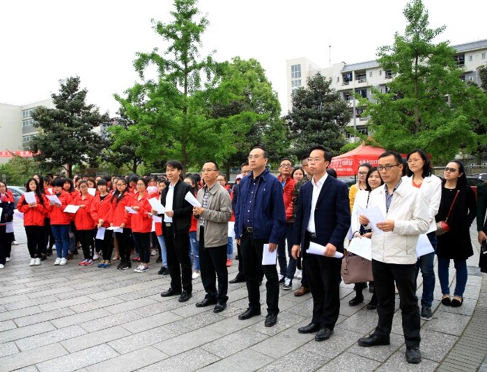 为贯彻习近平总书记在全国高校思想政治工作会议的讲话精神与中央《关于加强和改进新形势下高校思想政治工作的意见》的文件精神,为加强大学生对马克思主义经典理论的学习,拓展大学生理论联系实际的能力,增强思想政治理论课教学实效性,在喜迎第二十二个世界读书日的到来的契机下,4月20日,我院“诵读经典 传承文明”在学校一食堂广场启动。学校组织部部长王军、宣传部副部长罗晓文、学院党总支书记杨支才、学院副院长王未强莅临活动现场,学院全体教师参加诵读活动。