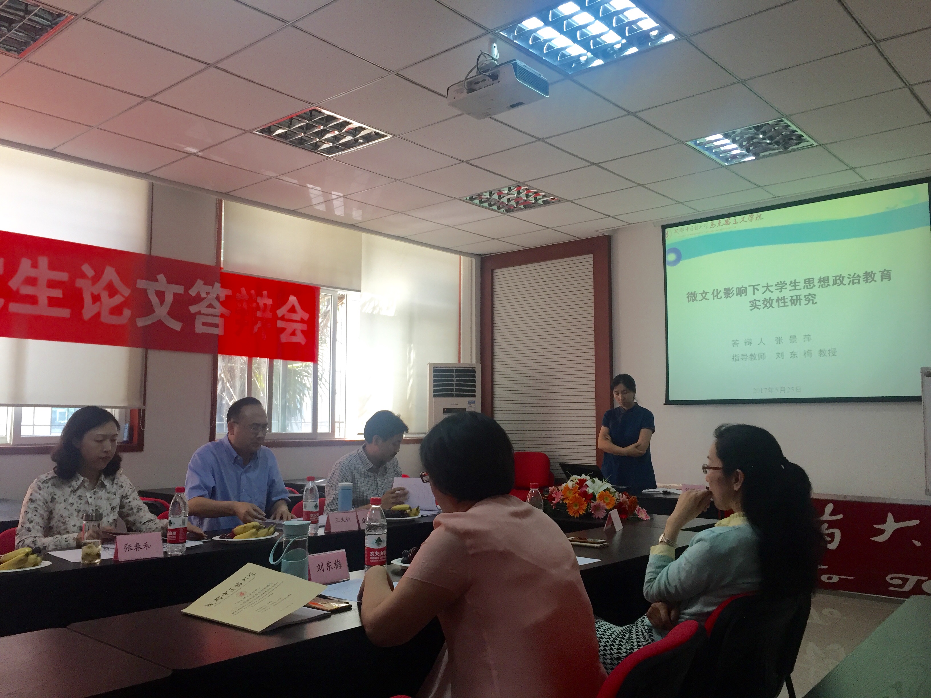 答辩会上,导师对答辩学生的学习、科研和工作情况作了介绍。两位研究生从选题构思、研究意义、研究方法、研究内容、创新之处等多方面对毕业论文进行了汇报。答辩委员会委员本着实事求是的科研精神和严谨负责的工作态度就论文的相关问题进行了提问,并就进一步完善论文提出了指导性意见和建议,强调要进一步突出论文选题的核心点、优化论文结构、完善论文内容。答辩研究生认真思考和回答了答辩委员提出的问题。