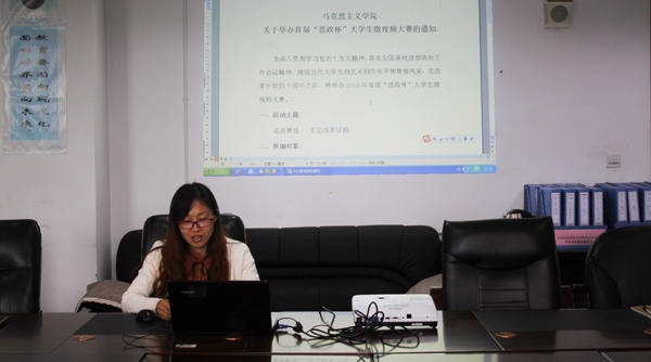 毛泽东思想与中国特色社会主义理论体系概论教研室于4月12日下午在百会堂5-4开展了关于举办首届“思政杯”大学生微视频大赛的动员活动,“概论课”所有专兼职教师参加了本次活动。