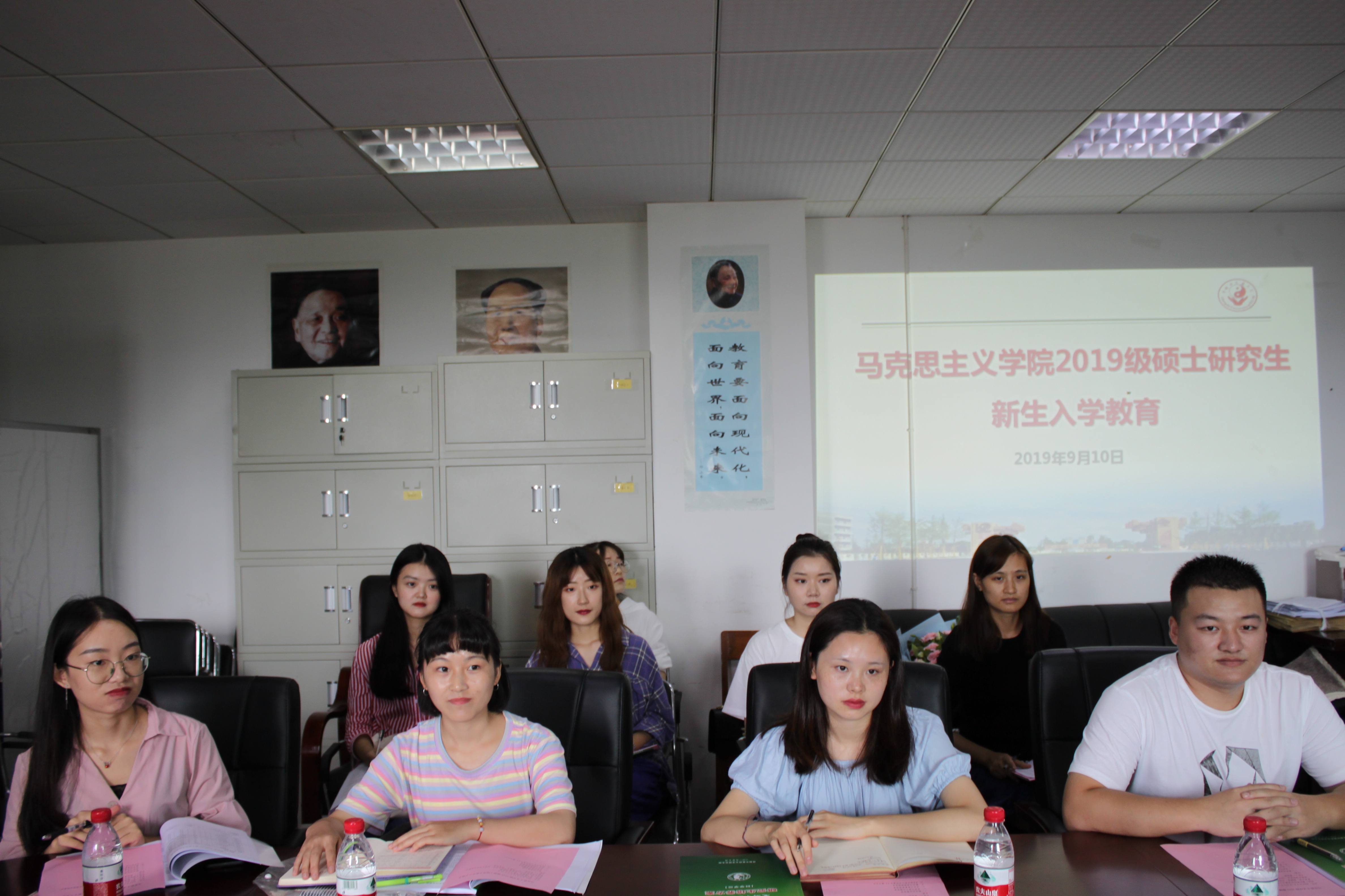 9月10日下午,马克思主义学院在百会堂5-4会议室召开2019级马克思主义中国化研究硕士研究生新生入学教育暨导师见面会。学院领导、研究生导师。研究生课程教师及全体硕士研究生参加会议。