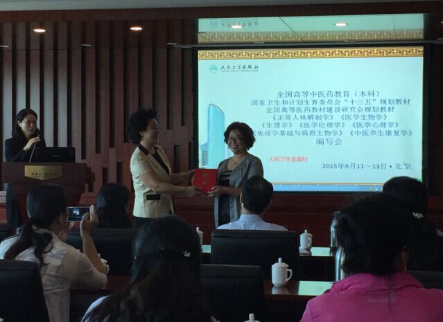 为深入贯彻两会精神和《国家中长期教育改革和发展规划纲要》、《医药卫生中长期人才发展规划(2011-2020年)》以及《教育部等六部门关于医教协同深化临床医学人才培养改革的意见》(教研〔2014〕2号)文件精神,推动医教研协同创新发展,适应新常态下全国高等中医药院校教育教学改革发展和人才培养的需要,2015年9月11~13日,全国高等中医药教育(本科)国家卫生和计划生育委员会“十三五”规划教材、全国高等医药教材建设研究会规划教材《医学伦理学》等7门教材编写会在北京人卫酒店举行。马克思主义学院院长刘东梅教授作为《医学伦理学》教材主编出席了会议,我院教师唐雪梅、雷虹艳也参加了该会议。