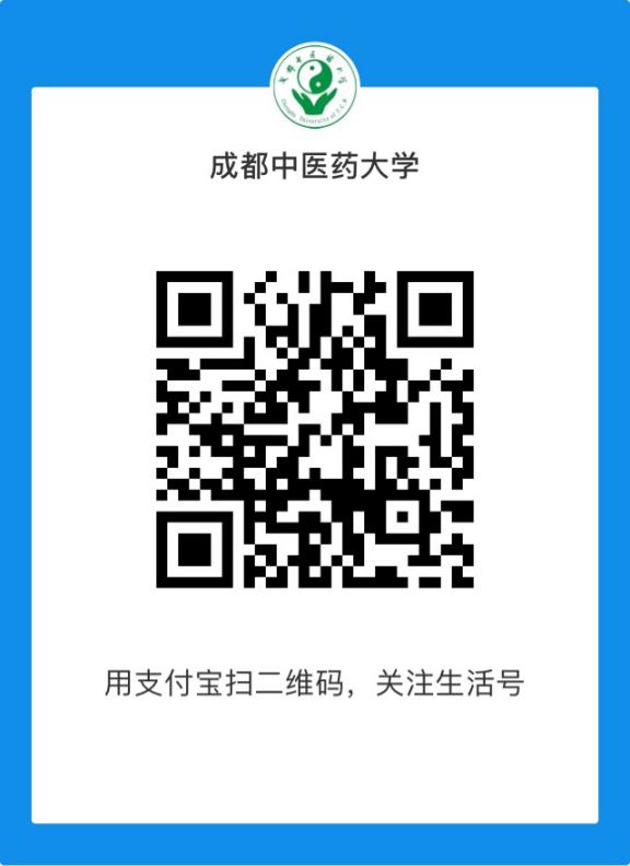 成都中医药大学2020年博士研究生报名费网上缴费须知 来源: 发布时间:2020-01-08 12:21:00 浏览次数: 次 【字体:小 大】 1、用手机支付宝扫描上方二维码,关注生活号。 2、通过生活号下方的“缴费大厅”菜单进入缴费大厅。 3、点击“博士考试报名费”,输入自己的姓名和报名号及身份证号并点击确定以验证信息,验证通过后跳转到确认页面 4、确认身份信息和金额无误后,点击底部的确认提交,输入支付密码完成缴费。 【打印正文】
