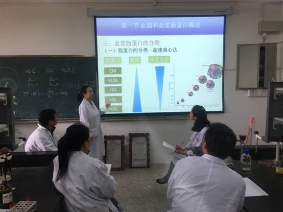 为提高青年教师教学能力,4月17日中午本教研室教师王映霜对《临床生化检验》课程以《血浆脂代谢紊乱的生化检验》这一章节为例进行了试讲。老师们认为本次试讲教案准备充分,教学设计合理,讲授清晰,应能达到预期教学目标。同时在重难点把握,如何进行课堂组织,ppt制作等方面大家也提出了相关的意见和建议。