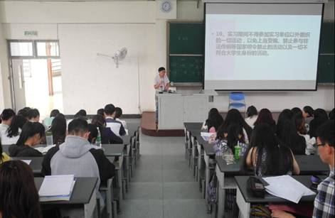 王英文老师讲解了实习期间的注意问题和学生们应该遵守的规则。指出实习目的是增强动手能力、提升职业技能、培养社会适应能力,实习目标是学会做人、做事、交友、学习。同时,王老师着重强调了学生们应严格请假、信息报告制度,将安全问题置于首位。许昌荣老师提出了对实习生的要求:学会将基础理论转化为实际操作;学会与老师相处、与病人相处、与同事相处;注意就业信息的掌握。最后,许老师讲解了实习的时间以及向同学们介绍了各个生源地招聘信息,推荐了相关的网站,希望同学们能够把握好机会,努力学习。预祝同学们顺利完成实习。