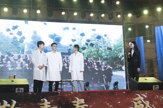 本次晚会分为“青春拂晓,意气风发”、“以梦为马,不负韶华”、“杏林情怀,感恩有你”三个篇章。开场以生动形象的沙画再现学生们刚进校的场景。随后,燃爆全场的武术表演、动人心弦的乐曲演唱、寓意深远的情景剧轮番上演,令人眼花缭乱、激情澎湃。节目中设置的三轮抽奖环节更是将现场气氛推动到高潮。同学们在欣赏 歌舞表演的同时,也收到了老师们的美好祝福及学校里可爱可敬的后勤员工的叮嘱和鼓励。首届国家级教学名师万德光和药学院师生带来的《师生情》更是让整个晚会现场弥漫着感人和不舍的情怀。最后晚会在由毕业班辅导员老师们带来的《祝你一路顺风》的歌声中缓缓落下帷幕。