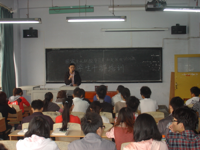 上午10点30,在汪家拐校区104教室,学院院长罗萍、学院党总支书记王英文、副书记官萍以及辅导员对学生会、团委及各班干部进行了一次培训。从充分贯彻党的教育方针到理性守法爱国,王书记作了讲话。