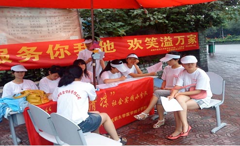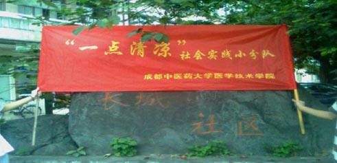 在经过热火朝天的期末考试后,我们在当天就进行了一次全队会议,更细致的安排了社会实践过程中的人员安排,把注意事项和各项纪律跟大家都再一次重申了,指导老师何老师也对我们小队进行了鼓励。在安排结束后,社会实践就紧锣密鼓的进行了。首先是采购了各种宣传品,比如说传单、队旗、横幅等物品。另外安排了同学做了海报,宣传我们此次活动。再就是安排了另一对人马去进行队服队帽的采购。各项准备活动都在活动前的两天准备好了,各项物品采购也完全结束了。我们的社会实践活动就此正式开始。具体的活动过程,我就不多赘述了。在活动过程中遇到的困难才是可以与大家分享的。我们克服了各种各样的突变情况,最终才把这次活动完满的结束。首先,我们遇到的是场地问题,因为社区情况的突然改变,我们不得不在相关领导的带领下重新选择地址,最后在社区办公处设立起了我们的服务点。这是活动第一天遇到的最棘手的问题。第二,我们面临了来自老天爷的考验,因为之前的各项预案都忽略了天气对我们的影响,所以在天公不作美,下起雨来的时候,最初我们感到了无奈,在经过和队员的商议后,我和几个队员尽快寻找雨伞,最后在一家水果商店中借到了一把旧伞,解决了这个问题。第三,就是来自于部分社区居民的不理解,有些居民不理解我们这次活动,认为我们在做商业宣传,所以对我们嗤之以鼻,严重的打击着每一位队员的心,几个队员在做宣传时还遭到了居民的谩骂,这更让队员们感到伤心,但是没有一位队员选择放弃,这就是我们的小队,队员们不厌其烦的和居民们聊天宣传,再一次体现了成都中医药大学学生的良好形象。在活动中遇到的困难远不止列举的这几项,但是没有一次困难击倒我们。小队队员总是团结在一起解决问题,克服困难,那种不放弃的坚强就是我们小队最强的所在。这就是小队在社会实践进行中最需要与大家分享的。