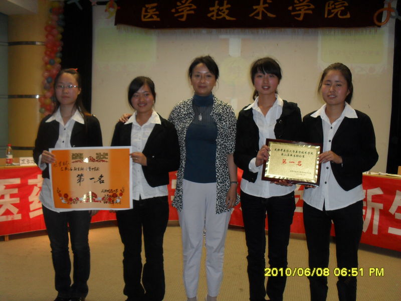 最终,09级医学营养众望所归,夺得第一。09级医学技术2班取得第二。09级医学检验3班取得第三。最佳辩手为正方三辩。学院领导为他(她)们颁奖并合影留念。