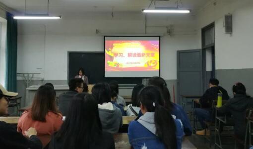 本次支部活动分为两个部分,“学习、解读最新党章”党课和“学习黄大年精神”活动。郑晓娟老师以习近平新时代中国特色社会主义思想为开端,解读了中国共产党行动指南的变化,社会主要矛盾的变化等党章中修改内容。接着郑晓娟老师带领同学们学习了黄大年精神,介绍了黄大年同志心有大我、志诚报国、教书育人、敢为人先、淡泊名利、甘于奉献的崇高精神,从黄大年同志的人物生平和评价等介绍黄大年同志的赤子之心,同学们大为触动。
