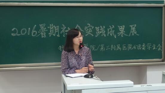 2016年9月27日下午6点,针灸推拿学院/第三附属医院2016年暑期实践成果展顺利举办。新生辅导员郑晓娟老师、校团委社会实践与青年志愿者工作部部长喻子薇同学、各小队成员以及2016级针灸推拿学2、3、4班的新生参与了本次成果展,本次活动由曾作梅同学主持。