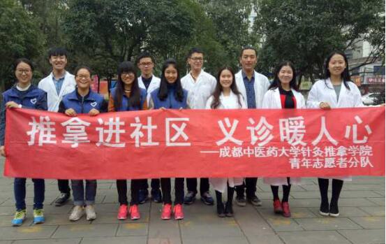 2016年10月30日,由针灸推拿学院/第三附属医院分团委学生会青年志愿者协会主办的第三次“推拿进社区”活动在温江学府社区举行。参加活动的为我院2015、2016级的11名志愿者,此次活动取得了圆满成功。