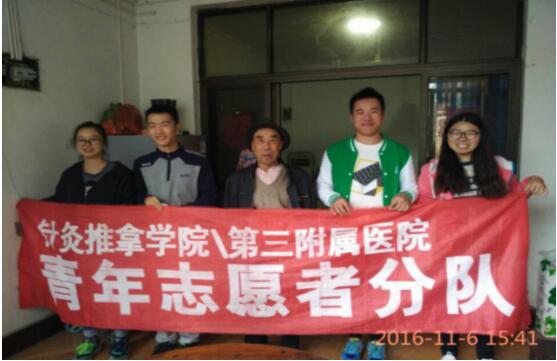 2016年11月6日,针灸推拿学院/第三附属医院分团委学生会青年志愿者协会与SUN善小屋一起在温江区蔡春发老人家中开展了“暖夕阳”养老照顾活动,该活动在志愿者们的热情参与下取得了圆满成功。