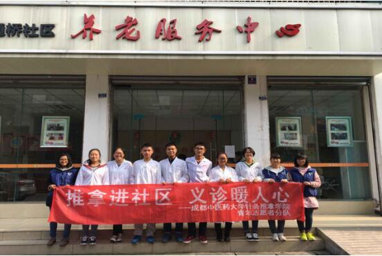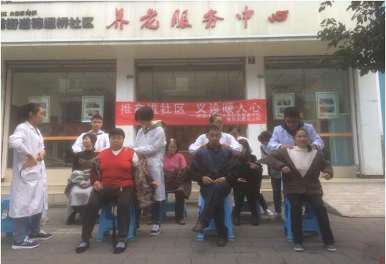 2016年11月13日,由成都中医药大学针灸推拿学院/第三附属医院分团委学生会青年志愿者协会主办的“推拿进社区 义诊暖人心”活动在温江学府、梓潼、德通桥社区成功举行。参加活动的为我院2015、2016级的志愿者,此次活动开展顺利。