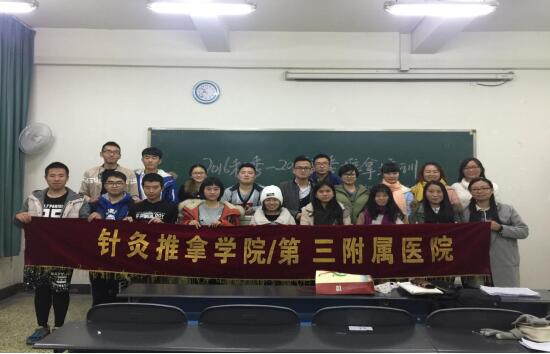 2016年11月27日,由针灸推拿学院/第三附属医院分团委学生会青年志愿者协会举办的推拿培训活动在温江校区B教部分教室举行,来自我院的10名志愿者及我院部分同学参与了本次活动。本次活动为本学期最后一次推拿培训暨推拿手法考核,旨在对同学们的推拿水平进行测试,对本学期的推拿培训做出总结,并以此为契机,为各位同学下一阶段的推拿学习打好基础。