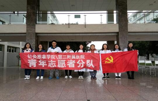 2017年3月23日中午12:00,针灸推拿学院/第三附属医院青年志愿者协会在温江校区DE教连廊开展了“感恩于心,推拿于行”校园推拿活动,该活动在我院志愿者们的努力下取得了圆满成功。参加活动的为我院2014、2016级的9名志愿者。