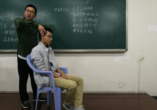 下午6点,本次活动正式开始。主讲老师首先讲解了揉法,为了让同学更明白该手法,老师请了一位同学当模特,给大家演示此手法。同学们跟着老师所说的要点,纷纷在搭档的身上进行了实践。同学们在学习的过程中积极向老师询问,老师也会检查同学们的手法是否标准,针对不足之处给予纠正。接着,老师又说明了推法和叩击类手法。活动接近尾声,由于同学仍旧热情高昂,老师又补充说明了托肘摇肩的手法。整个活动在积极活跃的氛围中圆满结束。