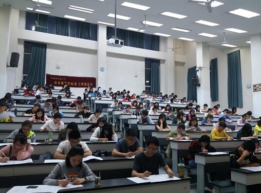 针推技能大赛初赛主要进行理论知识考核,分针灸和推拿两个部分。监考老师向参赛人员强调了相关要求后,考试准时开始。此次初赛共有250余位考生,大家在拿到试卷后,便投入了紧张有序的答题中。大家埋着头,奋笔疾书,全神贯注,在经过激烈的答题后,考生们陆续交卷,并有序的离开考场,考试于21:30全部结束。