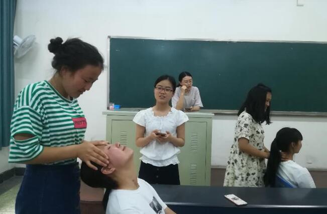 2017年5月14日,针灸推拿学院/第三附属医院分团委学生会青年志愿者协会在温江校区部分教室举行了本学期最后一次“推拿培训”活动。本次活动主要是对推拿手法进行考核,在我院十多名志愿者和部分同学的参与下完美收官。