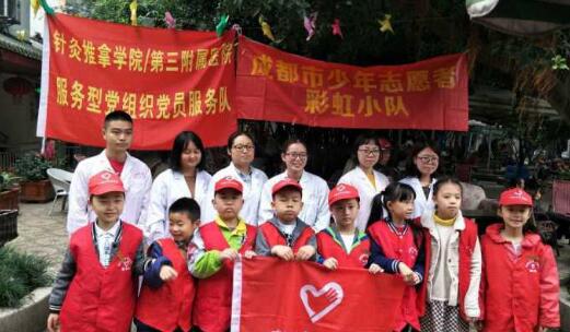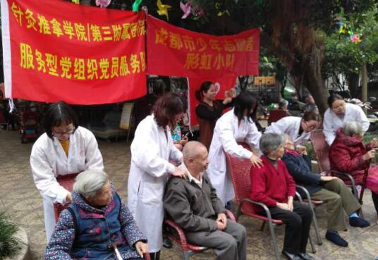 2017年10月28日,成都中医药大学针灸推拿学院/第三附属医院分团委学生会青年志愿者协会在金牛区文华路15号养老服务中心展开了本学年的重阳暖秋志愿活动,来自我院的六名志愿者和成都市少年志愿者彩虹小队的小志愿者们在这寒凉的秋日里为养老服务中心的老人们送去了一片温暖。