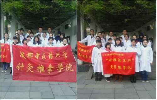 而青分队志愿服务队由2011级针推1班、2011级针推2班、2011级针推3班、2011级康复治疗学、2011级针灸英语共5个班级的27名志愿者组成。他们去往文庙前街86号、文庙西街2号、现代城、金盾路50号等共计9个院落进行志愿服务。