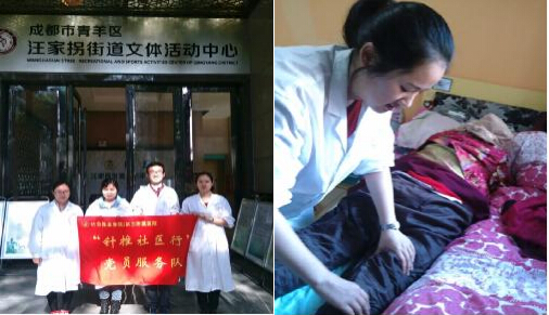 此次参与针推2010、2011党支部志愿服务的有11级针灸推拿学的1名党员和3名预备党员共4名同学。前往汪家拐为老服务中心服务点为老人进行推拿志愿服务。