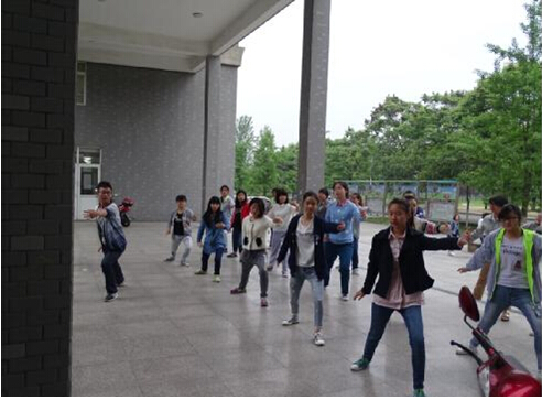 每班的晨练时间和晨练内容由各个班自己决定,晨练时间是30分钟。各个班的晨练内容各有特色,有跑步的、打太极的、练五禽戏的……。晨练的班级分散在学校的各个地方,特别是练太极的班级,体育场、五行大草坪、五行大坝、公寓楼下、篮球场……处处可见他们晨练的身影。