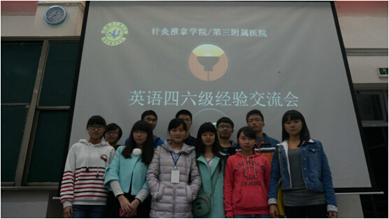 为了让学生熟悉并掌握大学生英语四六级的题型,破题方法以及解答技巧,顺利通过英语四六级,2014年11月8日星期六晚上六点,成都中医药大学针灸推拿学院/第三附属医院分团委学生会学习部在温江校区A教114举办了大学生英语四六级经验交流会。此次交流会邀请了经验丰富的彭韵琳老师作为宣讲人,由余磊同学担任主持人,学院温江校区各年级同学出席了交流会。