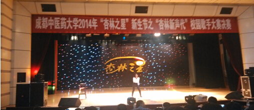 10月23日晚6点,成都中医药大学2014年“杏林之星”新生节之“杏林新声代”校园歌手大赛决赛在百会堂演播大厅隆重举行。担任此次比赛的评委的有学生处副处长、校团委书记佟枫,校团委副书记田晓放,学生处老师黎奇等。我院党委副书记杜娟作为嘉宾出席了本次活动。