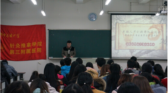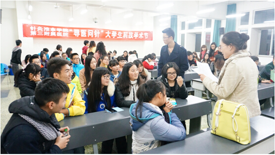 2014年11月28日18:30“寻医问针”大学生科技学术节系列活动之卓越人才创新团队交流会暨七年制学生专业委员会总结大会在温江校区A402顺利召开,来自2010级、2011级针灸英语专业的学生代表与2012级、2013级、2014级吴棹仙班的同学们共同参与了本次活动。