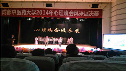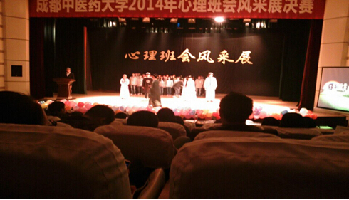 2014年12月4日晚18:00在百会堂演播大厅,由成都中医药大学心理协会举办的心理健康班会风采展决赛隆重举行。本次大赛由每个学院推选一个优秀班级参加,代表我们学院参赛的是2014级康复治疗学。校团委以及各学院领导出席了本次活动,心理老师陈玉兰、林靖,各学院分团委书记担任评委,各学院心理健康部部长作为大众评委参与打分。