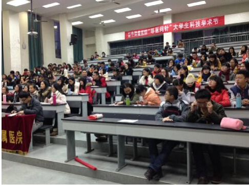 2014年12月10日18:00,“寻医问针”大学生科技学术节系列活动之“寻医问针演播室——专家讲坛”在A314正式开始,本次讲座由针灸推拿学院/第三附属医院主办,《恰同学少年》编委会承办的,主讲人为成都中医药大学硕士生导师钟兰教授,她结合自己多年的中医、针灸知识与丰富的临床经验为在座的同学们耐心解析了“针灸临床常用基本处方”。到场共180余名学生,讲座还未开始,整个教室就已经座无虚席。