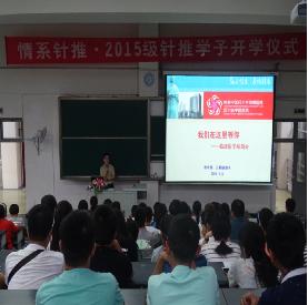 接下来由我院院长李瑛进行宣讲,李院长语言慷慨激昂,内容丰富详尽,包括如下内容:(1)七年制如何根据国家、社会需求改为5+3一体化;(2)学生可以有两个方向的选择——针灸推拿学和中医学,简介两者的特色和区别;(3)强调针灸推拿学的优势(4)针灸与中医的关系(5)简述针推学院30年的发展(6)针推的招生情况(研究生、博士生)和就业方向等。希望新生能较多的了解针推并选择针推。