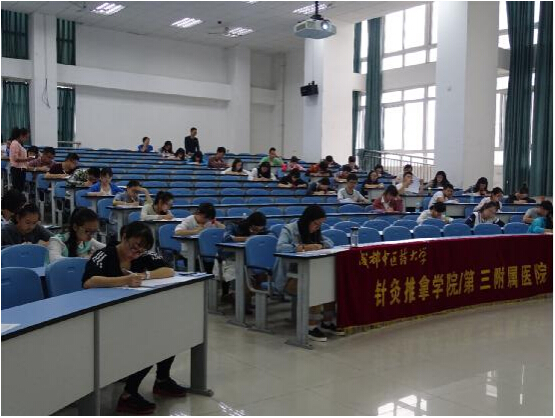 2015年10月16日17:30,第四届针灸推拿学院/第三附属医院针灸推拿技能大赛初赛于温江校区D教107、307、507以及十二桥校区二阶、四阶、五阶顺利举行。我院辅导员以及年轻专业老师担任监考员。温江校区本次参赛人员为227人,十二桥校区参赛人员为221人。