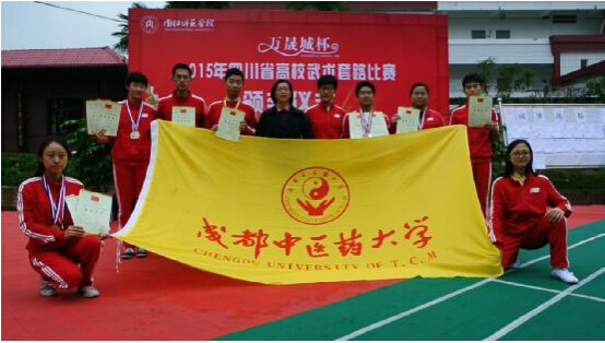 2015年11月11日至12日,“万晟城杯”2015年四川省高校武术套路比赛在内江师范学院隆重举行。针灸推拿学院/第三附属医院分团委书记冯丽娟为领队带领七名同学代表学校参加本次比赛,并取得优异成绩。
