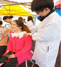 会场各学院服务台也积极开展宣传攻势,我院的展示内容丰富且有特色,有具有中华传统特色的武术、继承了中医传统的针灸技术、拔火罐技术以及推拿技术。学校志愿者们也忙碌地维持现场。尽管“双选会”现场下着雨,但同学们的热情依然不减,整个会场气氛热烈。