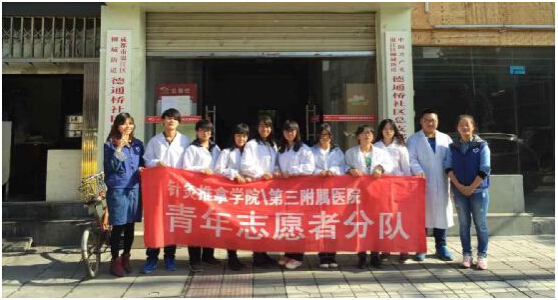 2015年11月15日,针灸推拿学院/第三附属医院青年志愿者协会在德通桥等社区进行了推拿进社区活动,有工作组28人和学习组12人参加了此次活动。在志愿者的努力和居民的积极配合下,本次活动取得圆满成功。