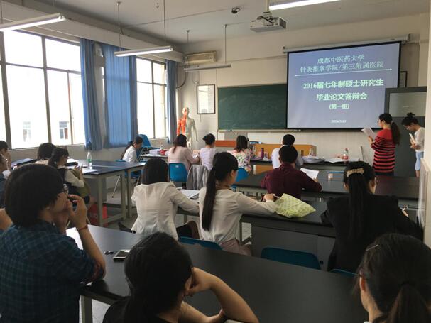 5月13日,针灸推拿学院/第三附属医院举行七年制硕士研究生毕业答辩会,共有60名2009级七年制中医学针灸英语方向的学生在完成所有培养环节、通过毕业论文查重、盲审和预答辩后提交答辩委员会答辩。来自四川大学华西医院、四川省中西医结合医院、四川省第二中医院、成都市中西医结合医院等单位的专家和本校硕士生导师共同担任答辩专家。学校研究生教学督导罗才贵教授和胡幼平教授全程参与督导。
