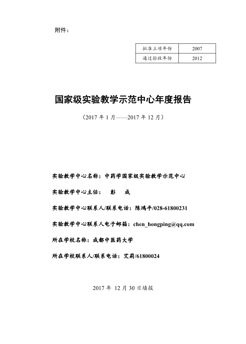 2017年中药学国家级实验教学示范中心年度报告
